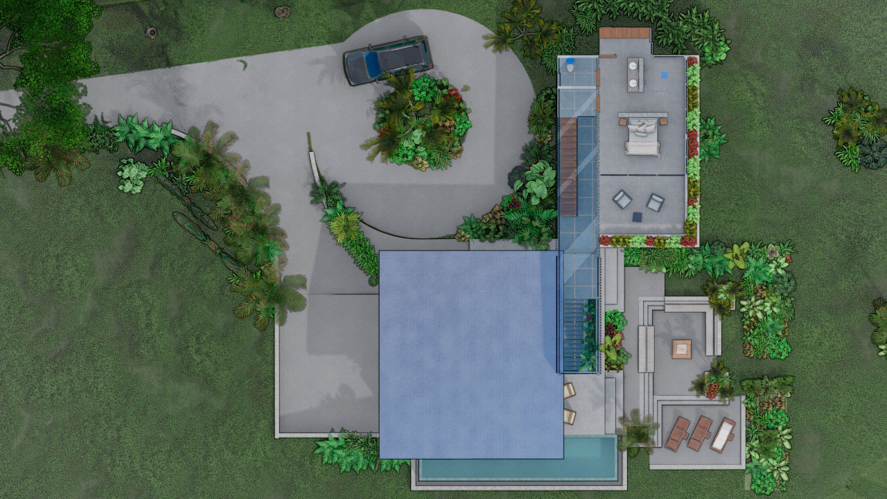 We carefully considered the existing topography to minimize unnecessary earthwork, ensuring that the house harmoniously blended with the natural landscape. Accessible materials and colors were chosen to seamlessly integrate with the natural surroundings. Given the region’s consistent rainfall, we incorporated predominantly tropical plants, eliminating the need for constant irrigation.