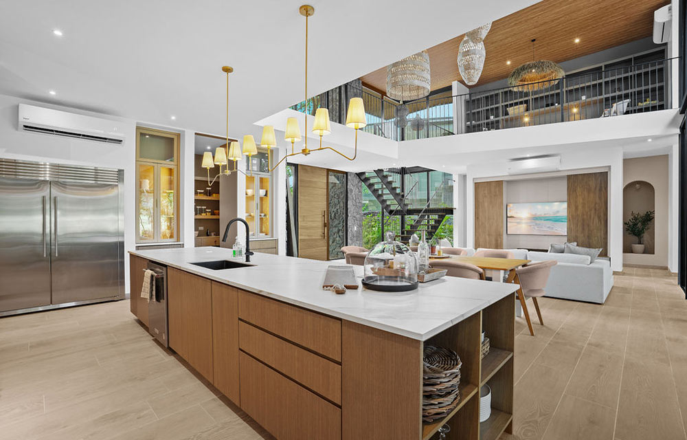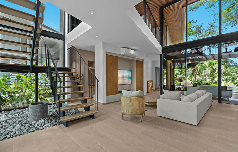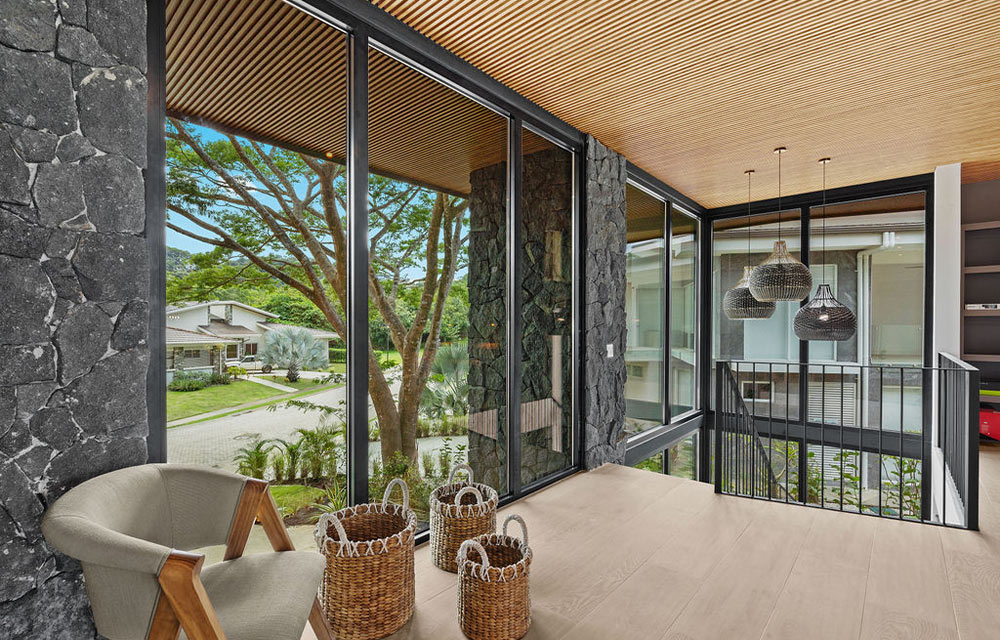 La ubicación de este proyecto es una Reserva Natural. La casa tiene vistas a un campo de golf, y todas las áreas sociales fueron diseñadas para recibir a los invitados desde la entrada principal, con un concepto abierto, un espacio de doble altura y vistas despejadas hacia el campo de golf y todas las áreas exteriores, permitiendo una experiencia privada pero inmersiva en la naturaleza que la rodea.