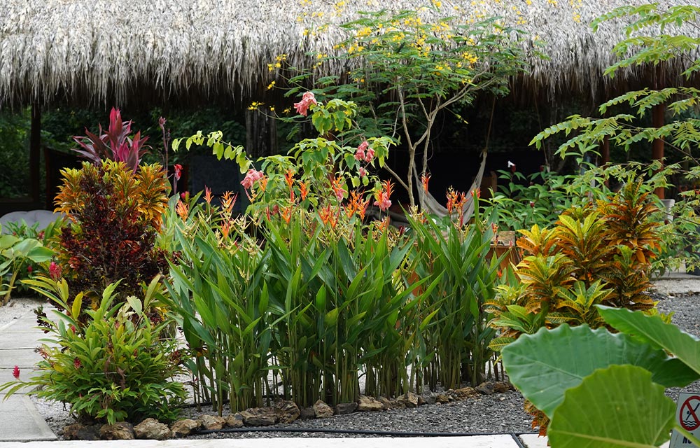 The gardens were designed to offer intimate and relaxing spaces, surrounded by native foliage, lush blooms, and natural shade that invite rest and contemplation.